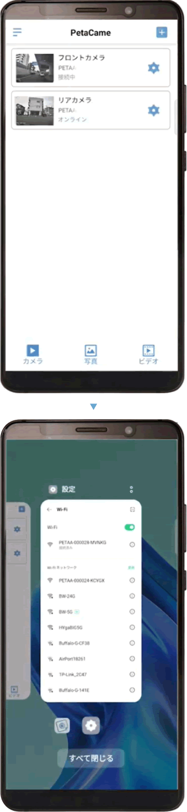 例)フロントカメラ/リアカメラ