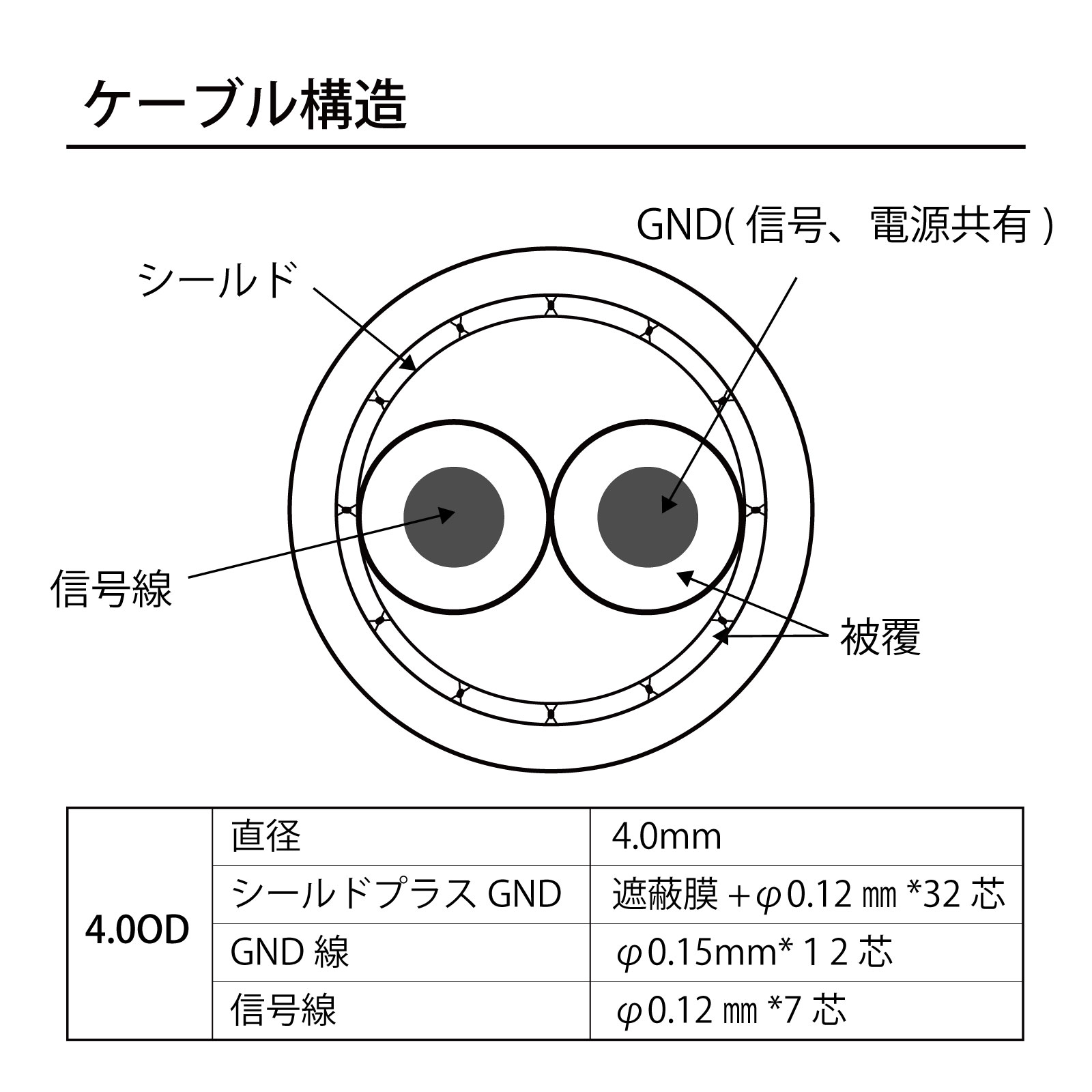 電源・ビデオ信号一体型のカメラ用ケーブル