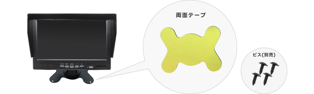 付属の両面テープで貼り付けるだけです。別売のビス(ネジ)でしっかり固定することも可能です。